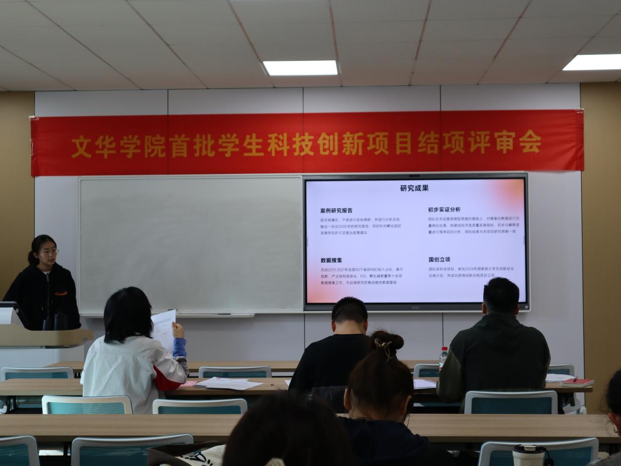 评审现场,各负责学生依次汇报答辩,大家从立项契机、项目过程、成果展示等多方面进行了详细介绍。评审专家围绕各项目组研究进度和存在问题,从实践成果如何落地、模型数据如何选取、论文成果如何转化等方面进行指导,并找准问题症结,对指导项目研究进度和完成验收发挥了重要意义。