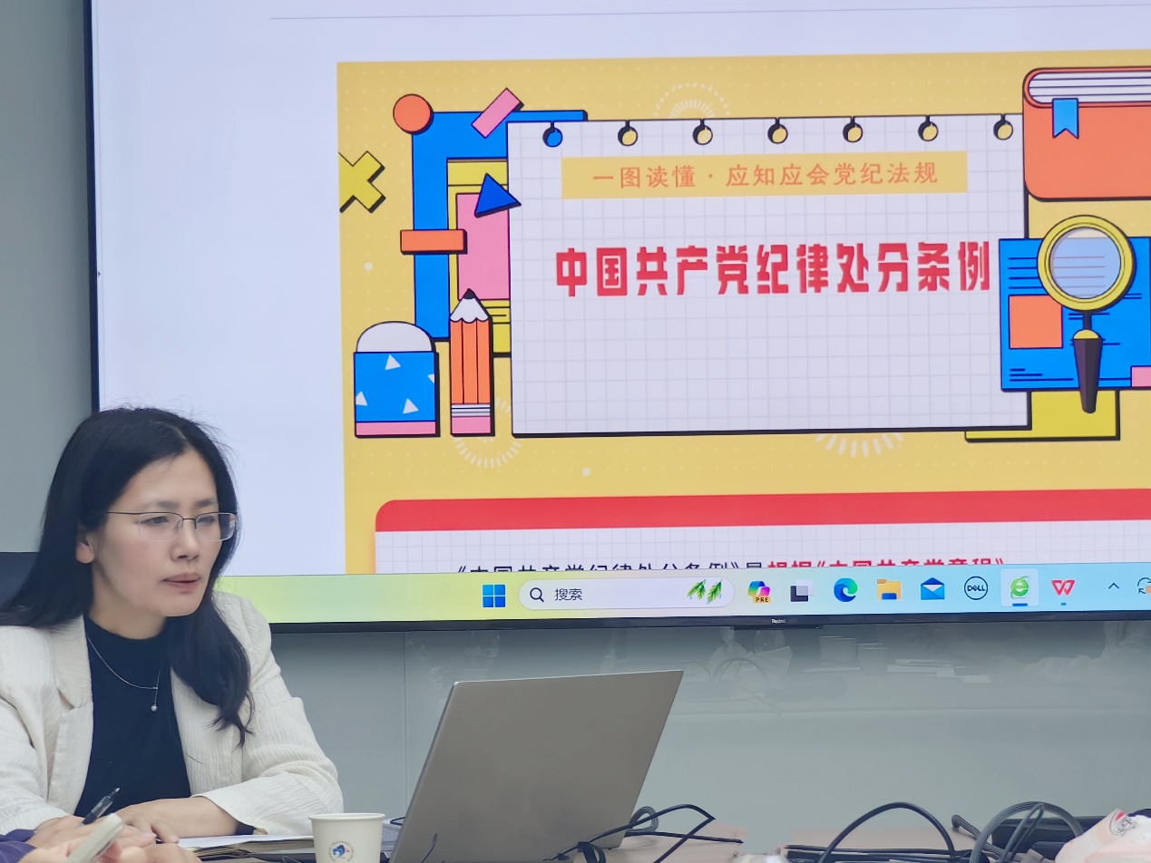 会上,沈晓敏讲解读《中国共产党纪律处分条例》专题党课,并领学党员干部违纪典型案例。通过专题警示教育,以案说德、以案说纪、以案说法、以案说责,让全院教职工受警醒、明底线、知敬畏,做到自重、自警、自律,形成守底线、遵纪律的良好习惯。