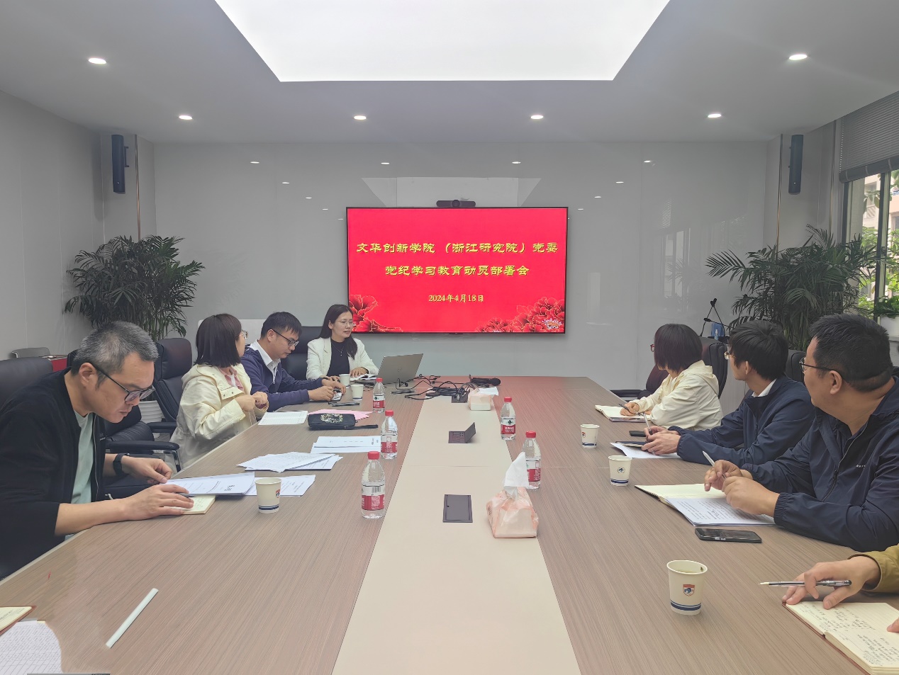 4月19日上午,学院党委召开党纪学习教育动员部署会,学习贯彻习近平总书记关于党纪学习教育的重要讲话和重要指示精神,传达学习党中央、浙江省委、学校关于开展党纪学习教育的决策部署和具体要求,启动部署学院党纪学习教育工作。党委书记沈晓敏主持会议并讲话,院领导班子成员、各党支部书记、全体教职工参加会议。