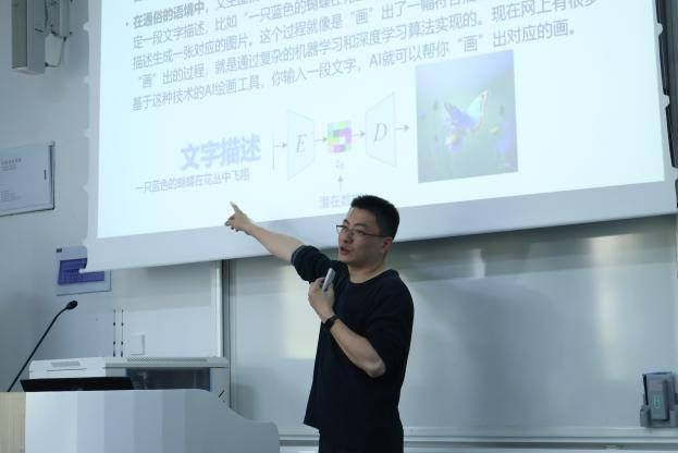 4月18日下午,在A205教室,浙江传媒学院数字媒体技术专业主任张帆为数字财经创新班师生带来题为“解码AI新视界:CHATGPT与文生图驱动的行业变革”的讲座,王阿蒙老师主持讲座。