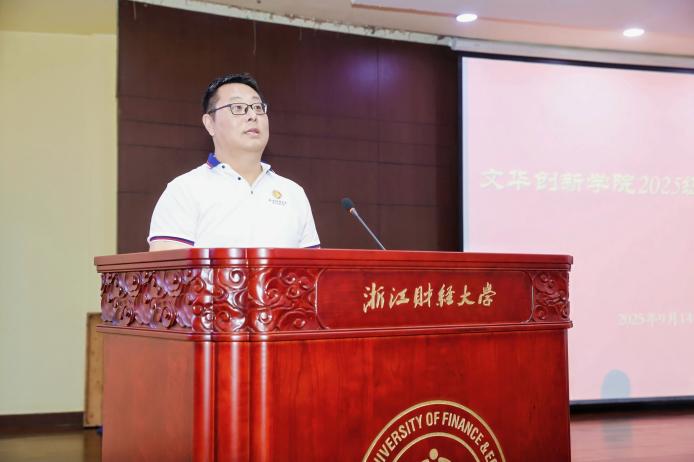并以“人才培养模式改革3.0”为主题作报告。叶舟分析人工智能时代的发展和行业岗位的深刻变化,强调新文科背景下人才培养模式改革的重要性。“一生一方案”人才培养3.0模式要以项目代替专业、赋予学生充分选择权,要形成平台+项目组织体系、夯实MAQ基础,要构建K+MAQ型课程体系建设,让学生在20年后仍然具有选择权。他还家长们强调了学院特色优势、学业要求及实行严格的退出与警告机制等。最后,他指出,教育的终极目标不仅是授之以鱼,更是授之以渔,乃至授之以‘誉’,学院将更注重赋予学生选择权与持续竞争力,助力其成为未来行业拔尖人才。