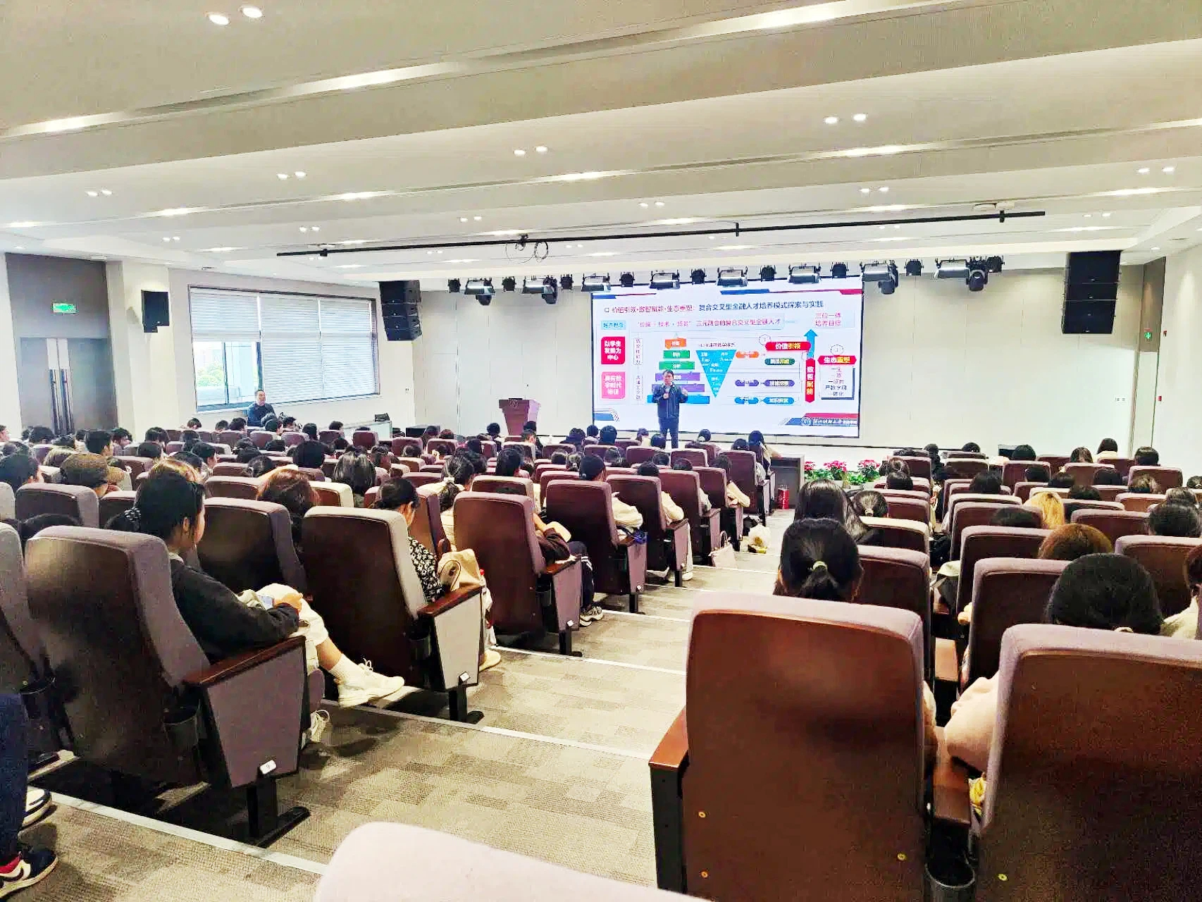 讲座尾声,金骋路强调“智慧不等于高科技,而是高质量的人性化”,这一深刻见解让同学们意识到,金融学绝非单纯的技术工具与模型运算,而是融合了人文关怀、社会责任与专业素养的综合性学科,为大家树立了更为立体的专业认知。