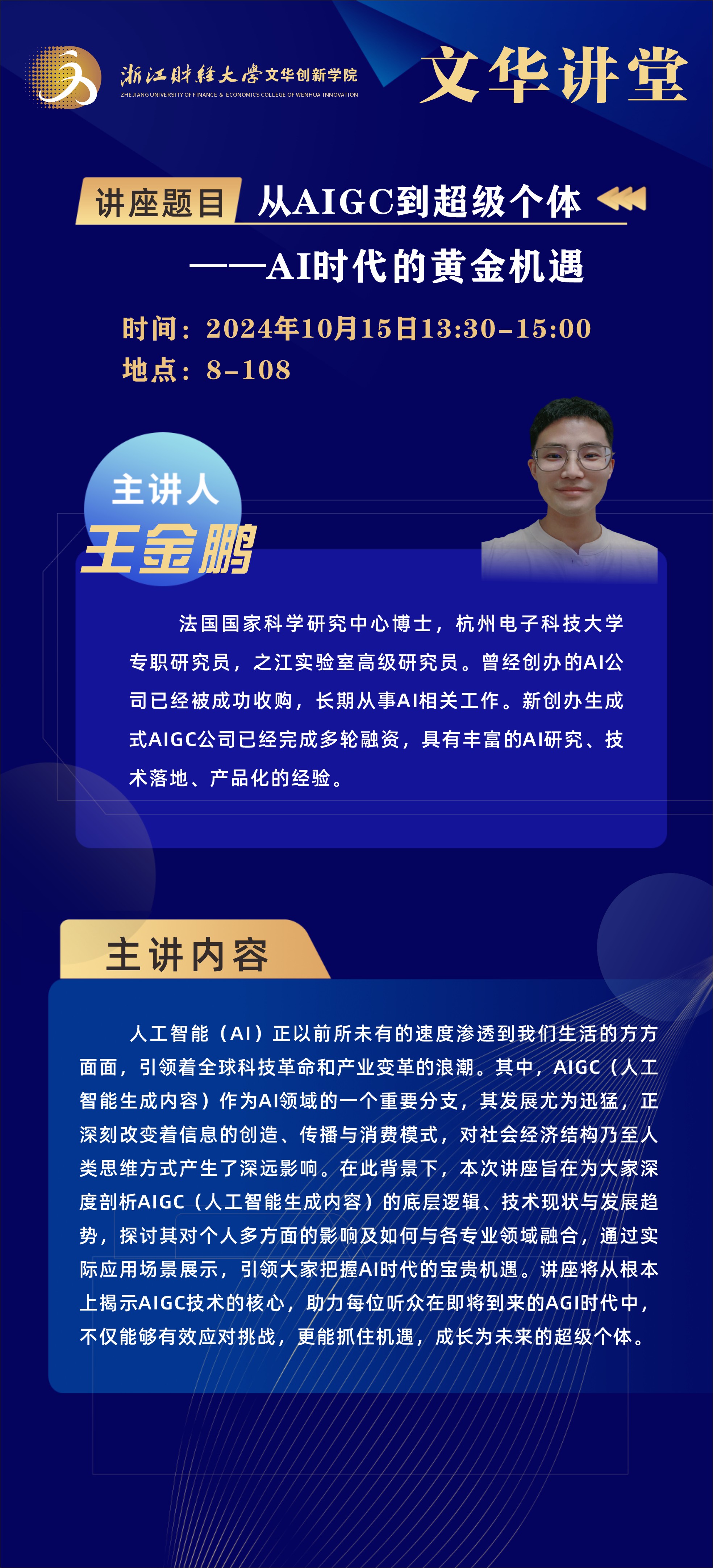 王者 讲堂讲座预告:从AIGC到超级个体——AI时代的黄金机遇